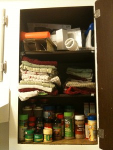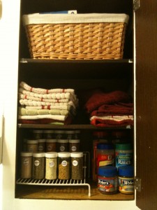 I also wanted to organize my spice cupboard and my dish cupboard as well and here are the results.