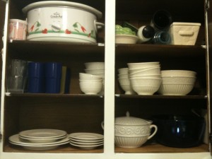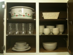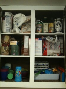 I had way too much stuff crammed into my cupboards in an unorganized manner. bags of baking supply’s, boxes of pasta, and unorganized kids dishes.