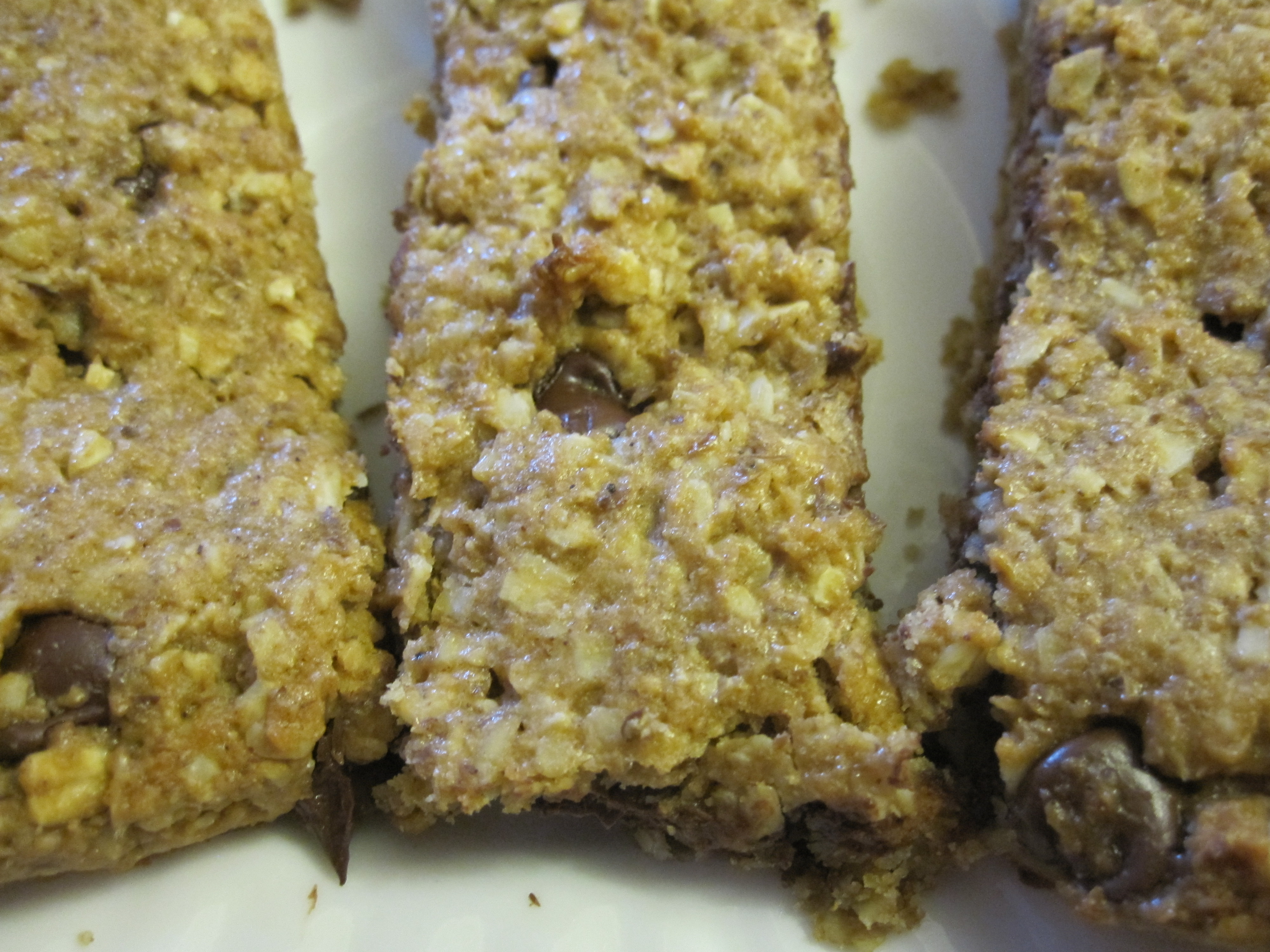 2. Place 1 cup rolled oats in a blender or food processor and grind until you have a coarse flour. In a medium bowl combine ground oats with flour, 1 Tbsp rolled oats, chopped nuts, wheat germ, flax seed meal, baking soda, baking powder, cinnamon, and salt.