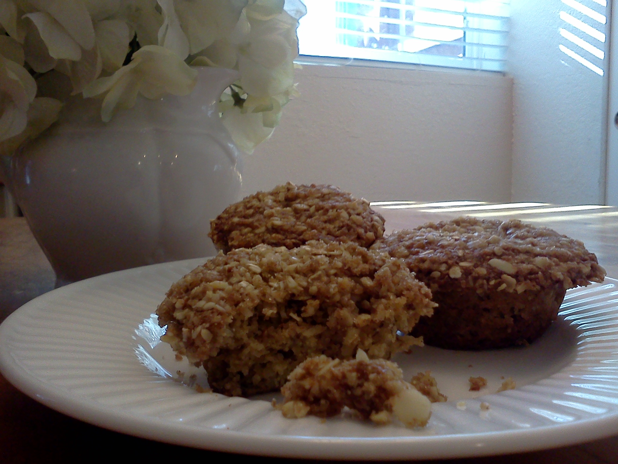 4. To make the topping: in a small bowl combine the oats, brown sugar, and cinnamon. Cut in the butter until it is a coarse crumb mixture. Add in the nuts and generously sprinkle on top of the muffins.